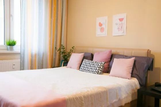 Летом не жарко, потому что сторона не солнечная. Зимой не холодно. Температура радиаторов регулируется.