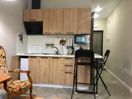 В продаже уютная квартира - студия, в жилом комплексе Оазис, полностью укомплектованная всей необходимой мебелью и бытовой техникой.