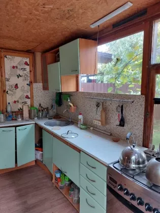 Продаётся дом СНТ Колос 5 сот, забор, в 50м магазины, остановка, школьный автобус. Банька мал. Свет, скважина,септик, фруктовые деревья, летняя кухня, под домом гараж большой, навес, кухня, комната, на втором этаже комната, прописка