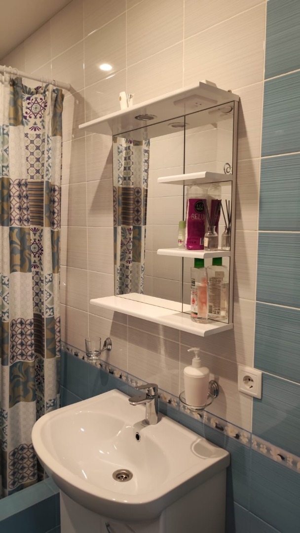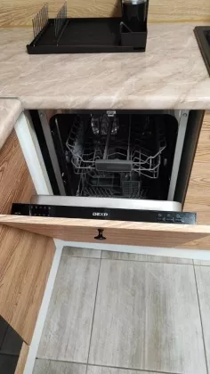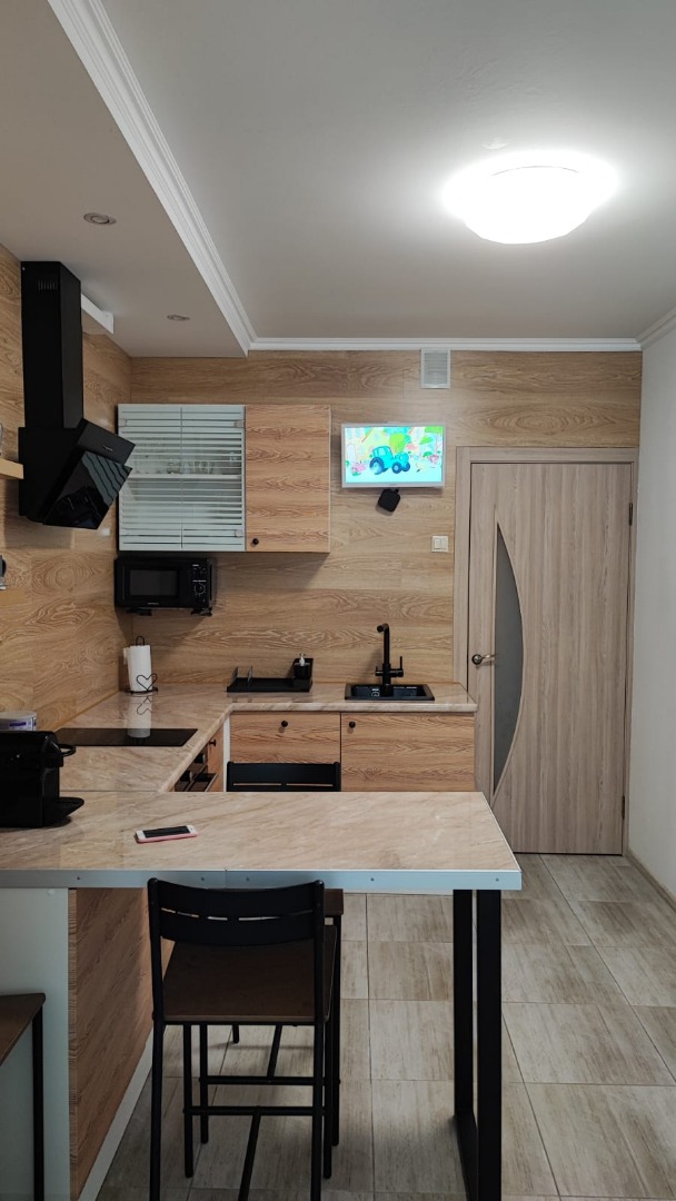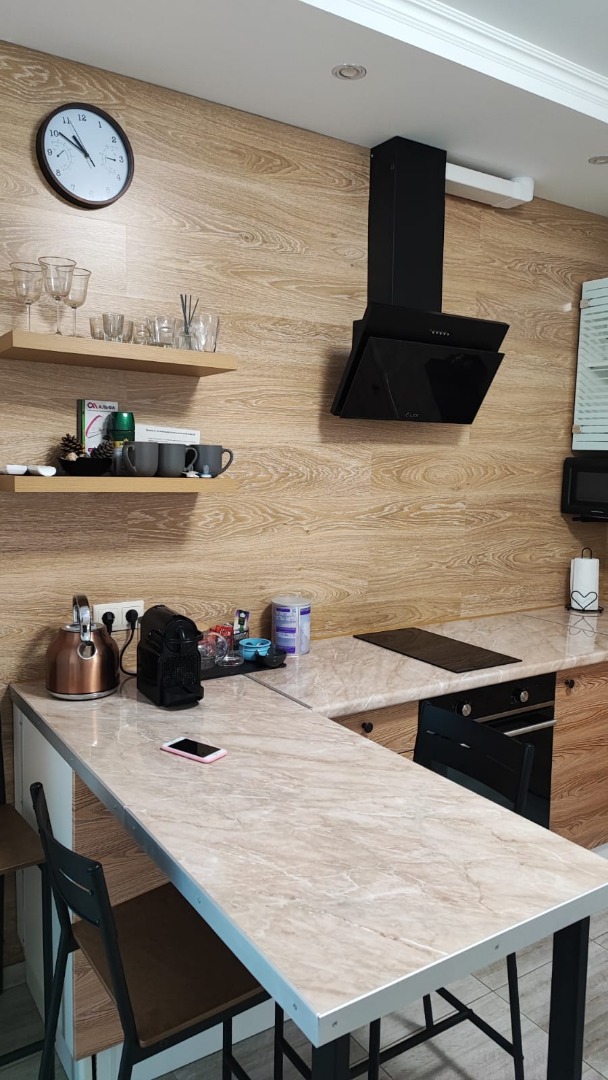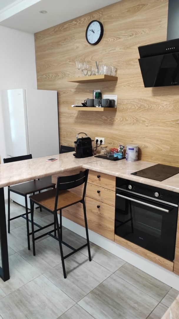 На кухне: индукционная варочная, духовка, вытяжка, ПМ, холодильник, кофемашина, электрогриль, мультиварка, большой выбор посуды, детский стульчик, телевизор с приставкой xiaomi, кондиционер. Также установлен фильтр обратного осмоса на питьевую воду.