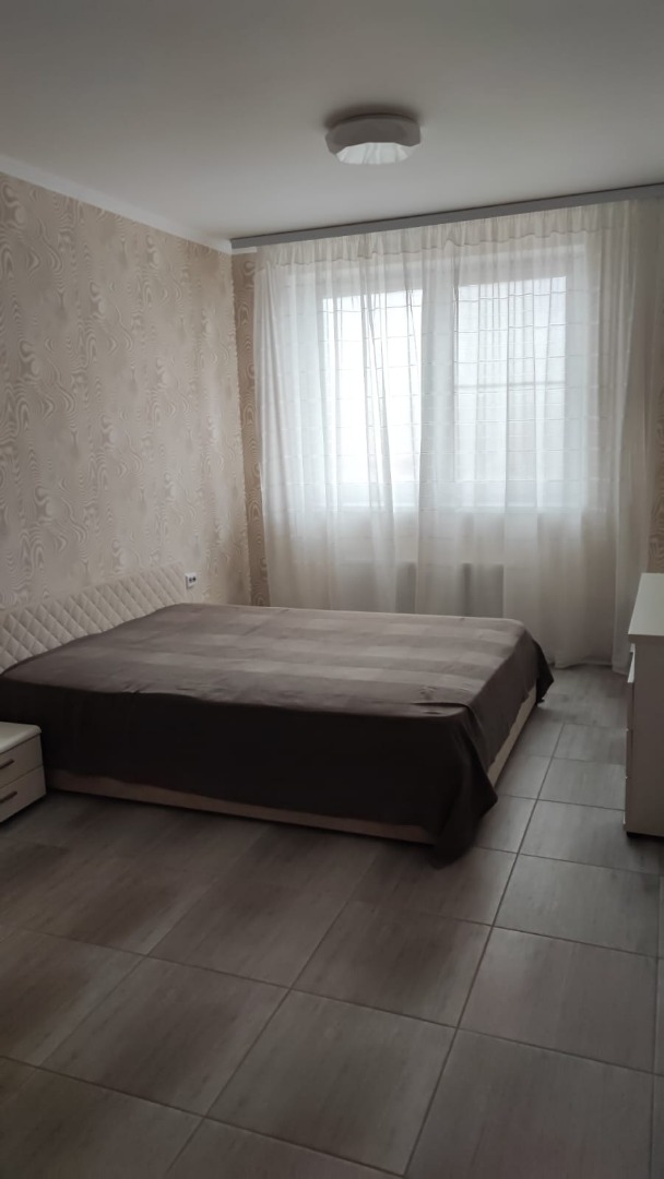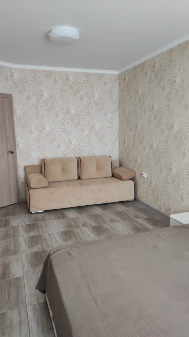 В комнате двуспальный диван, кровать, комод, прикроватные тумбочки, телевизор с приставкой xiaomi, кондиционер. Вся мебель хорошего качества и приятных оттенков.