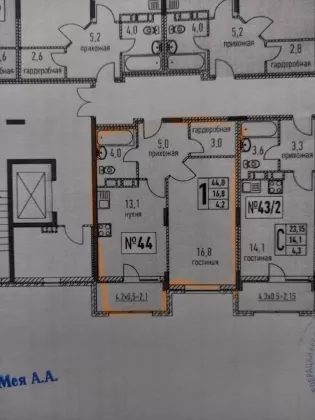 Продается однокомнатная квартира, 41 кв.м., 4/6 эт