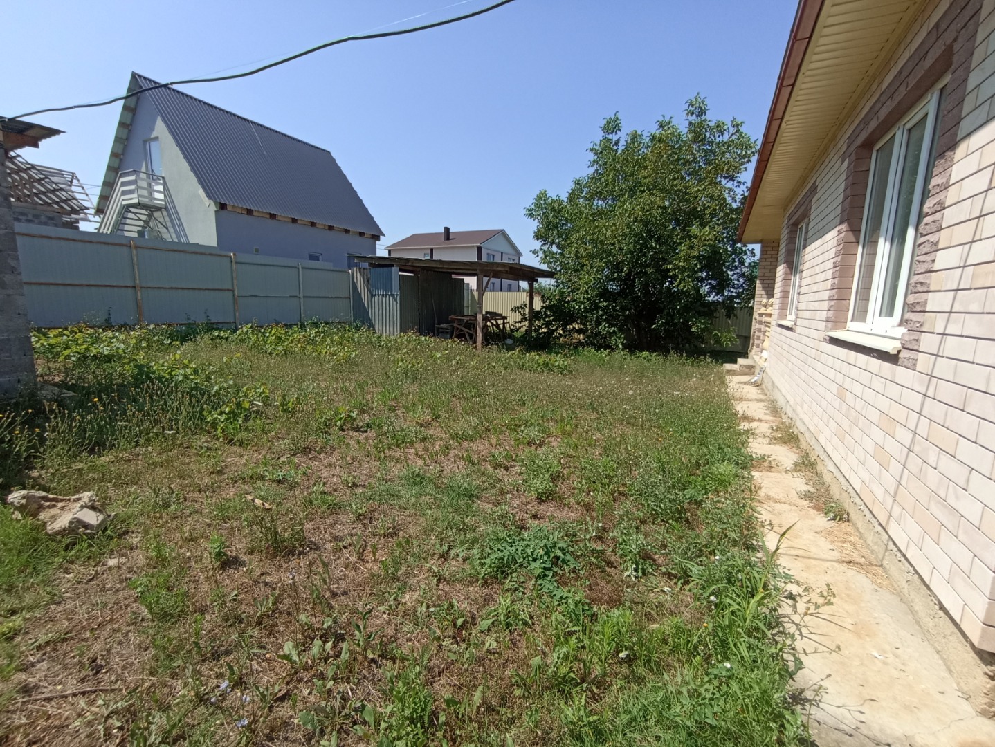 На участке есть парковочное место, выход на террасу, построена душевая, хозблок, несколько плодовых деревьев.