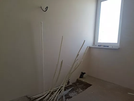 В доме изготовлена электроразводка, натяжные потолки, разводка теплых полов, раздельный санузел.
