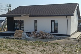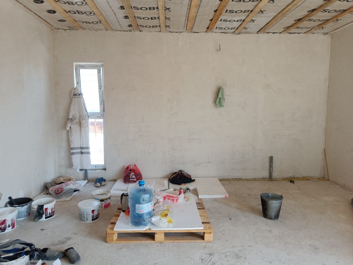 В доме выполнен предчистовой ремонт, три жилых комнаты, большая кухня-гостинная, совмещенный санузел, терраса.