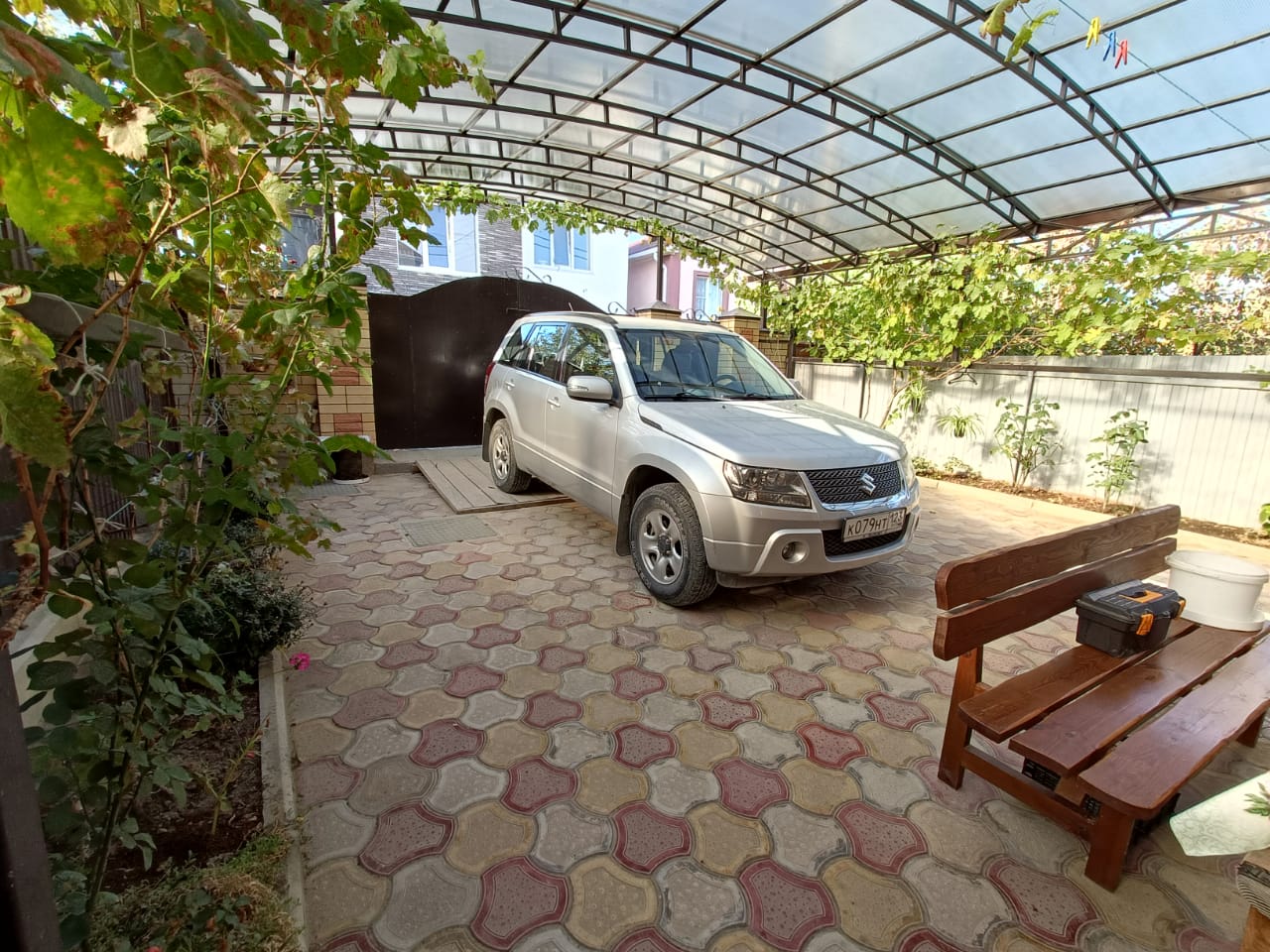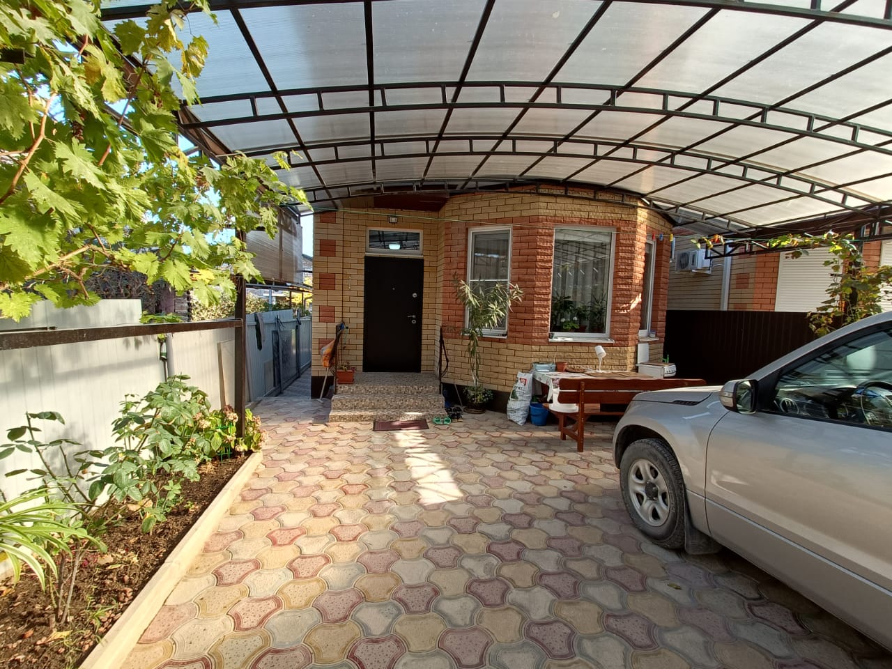 Во дворе навес над парковочным местом, благоустроен сад, стоит теплица.