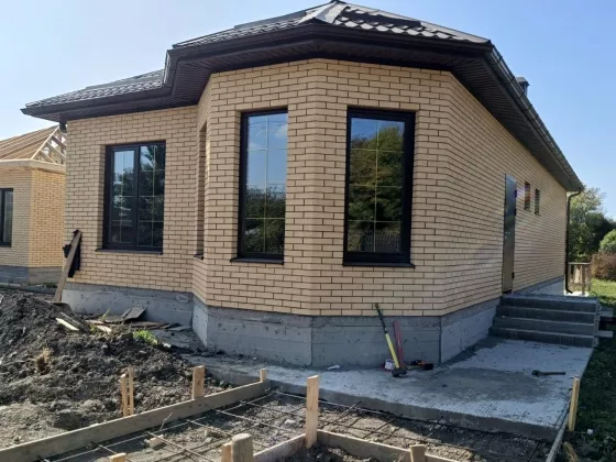 Дом выполнен из высококачественных материалов, облицован кирпичом, по периметру участка забор с колоннами. Три жилых комнаты, большая кухня-гостинная, совмещенный санузел, выход на терасу с панорамными окнами.