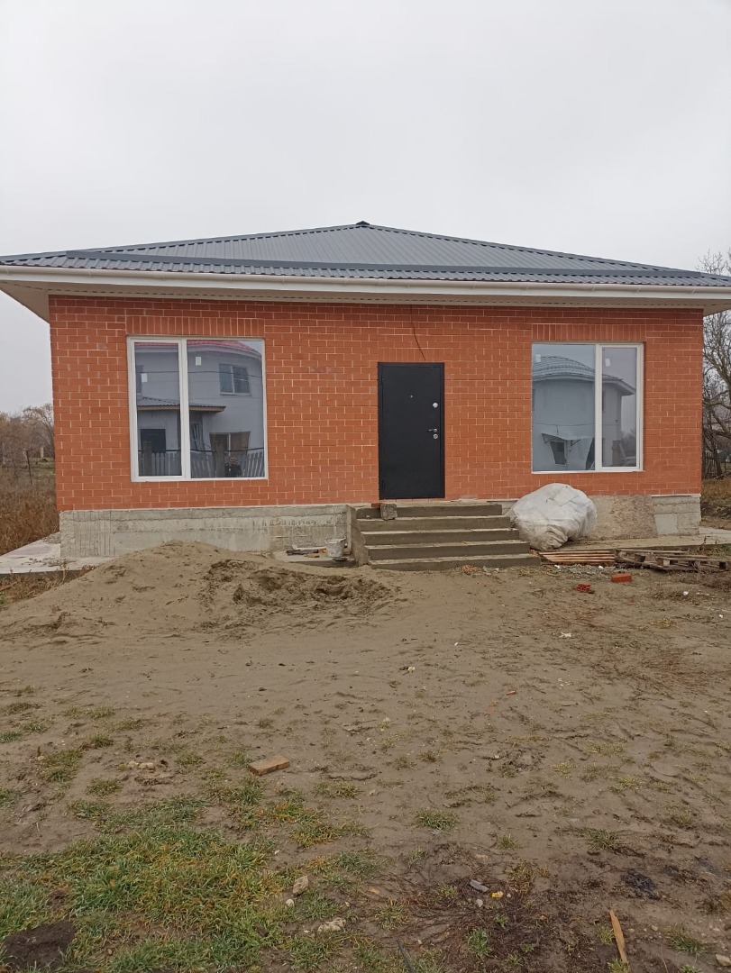 Продается новый дом общей площадью 120 кв м. Получены техусловие на газ, сделан проект. Дом тёплый, уютный. До центра станицы 5 мин пешком. Рядом школа, детсад, аптека, магазины. В доме две спальни, кухня-зал, санузел, терраса. Двор площадка под авто, клумба.Документы готовы к продаже, быстрая сделка.