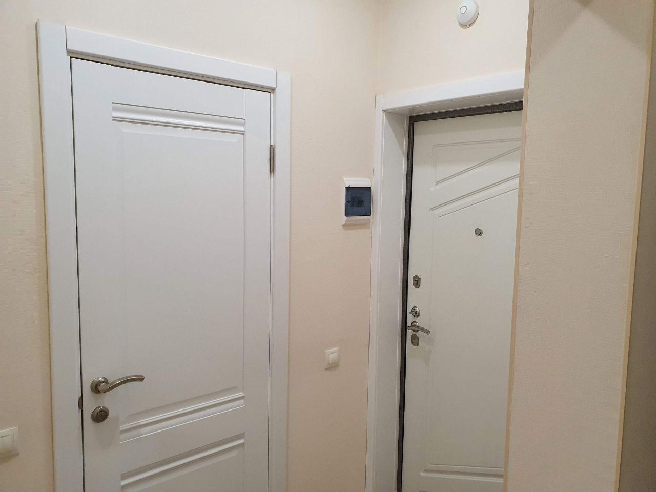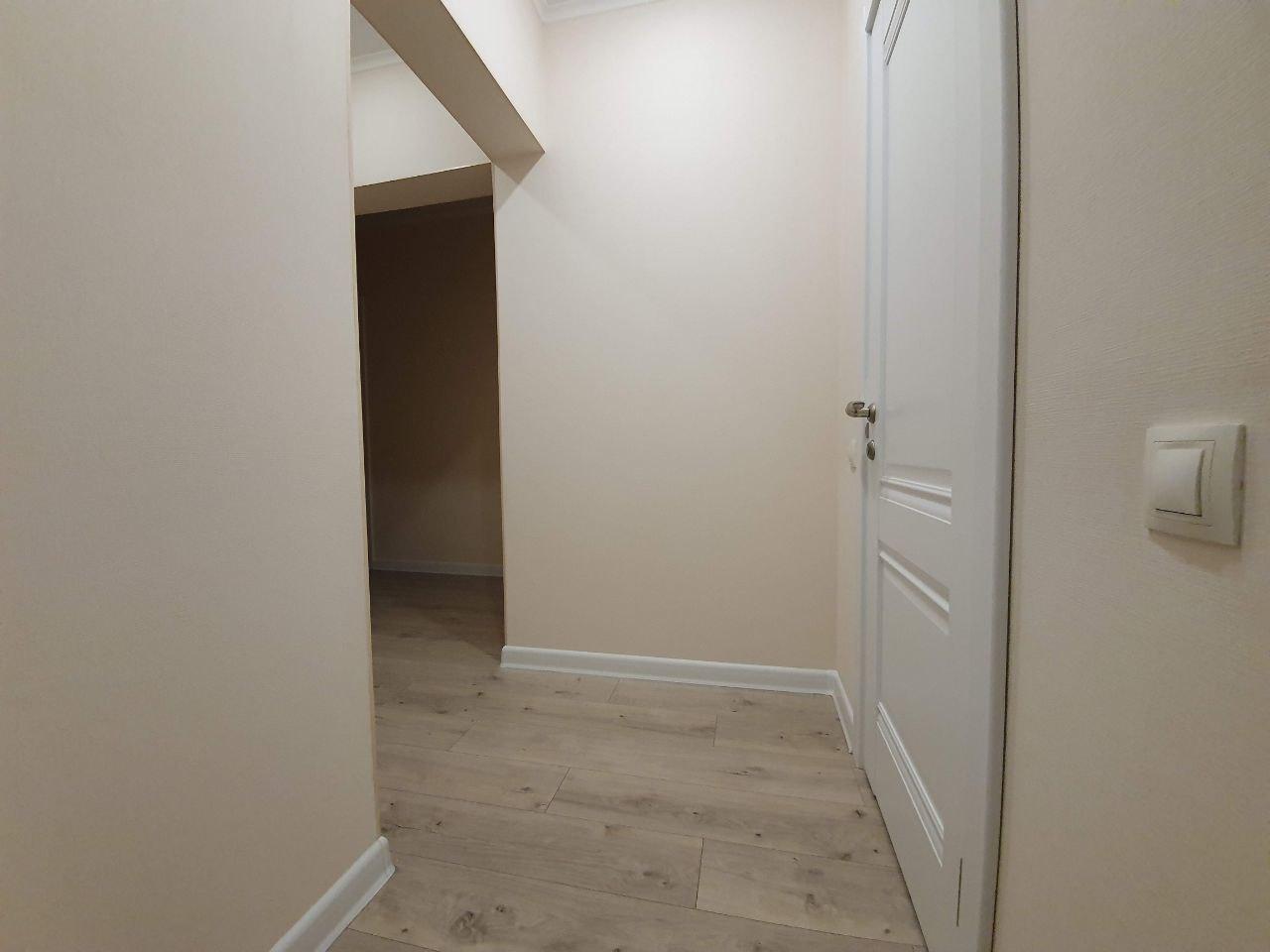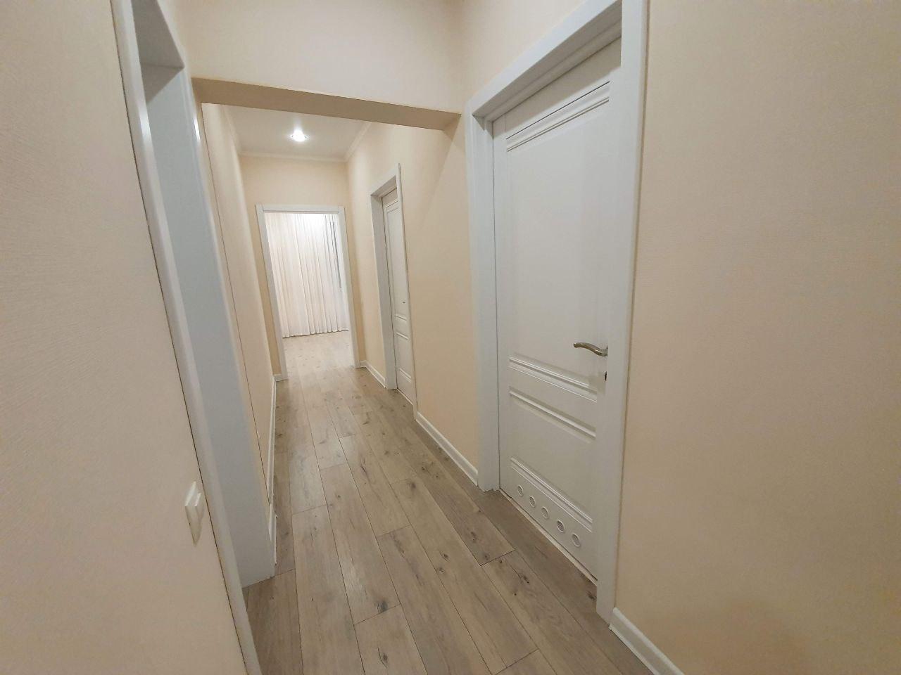 В квартире сделан качественный ремонт, дорогая плитка в санузлах, теплый пол в ванной, установлена качественная электрика, хорошие двери.