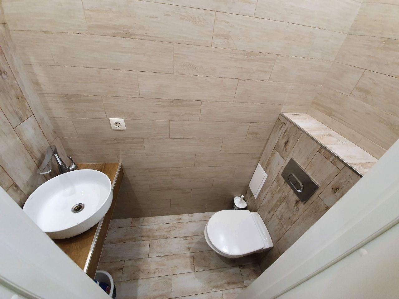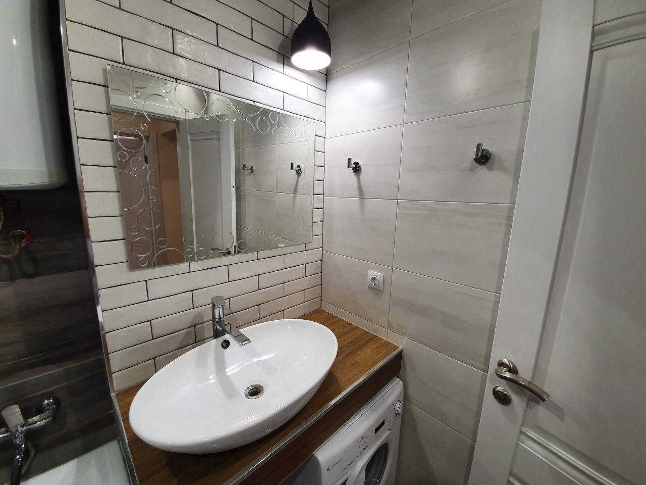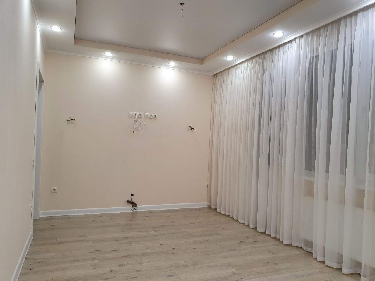 В квартире сделан качественный ремонт, дорогая плитка в санузлах, теплый пол в ванной, установлена качественная электрика, хорошие двери.