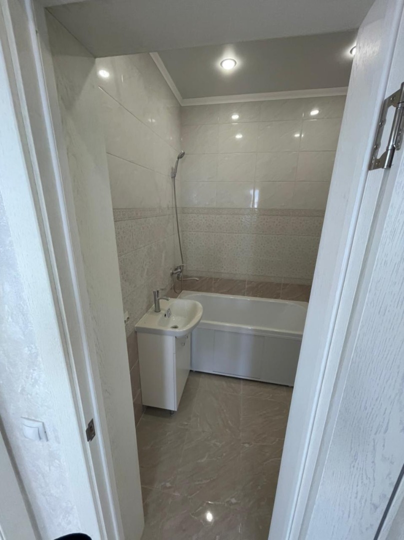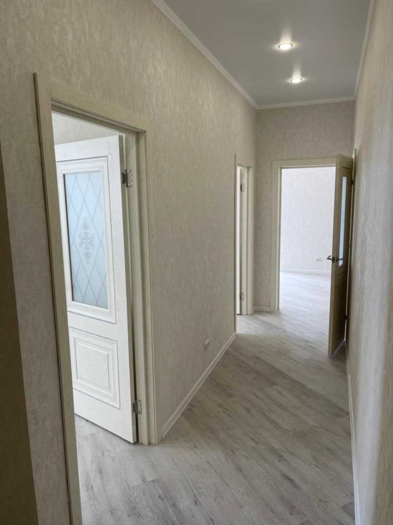 В квартире выполнен красивый ремонт в светлых тонах.