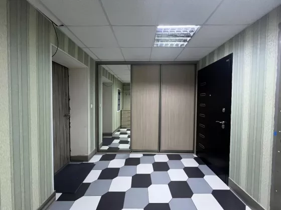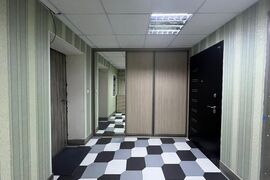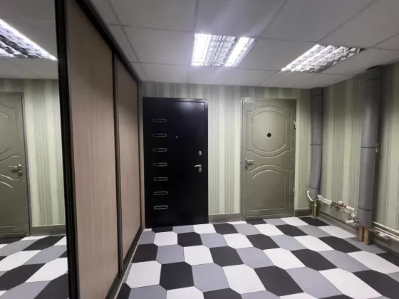 Есть большой тамбур с соседней квартирой 8 метров, со встроенным шкафом.