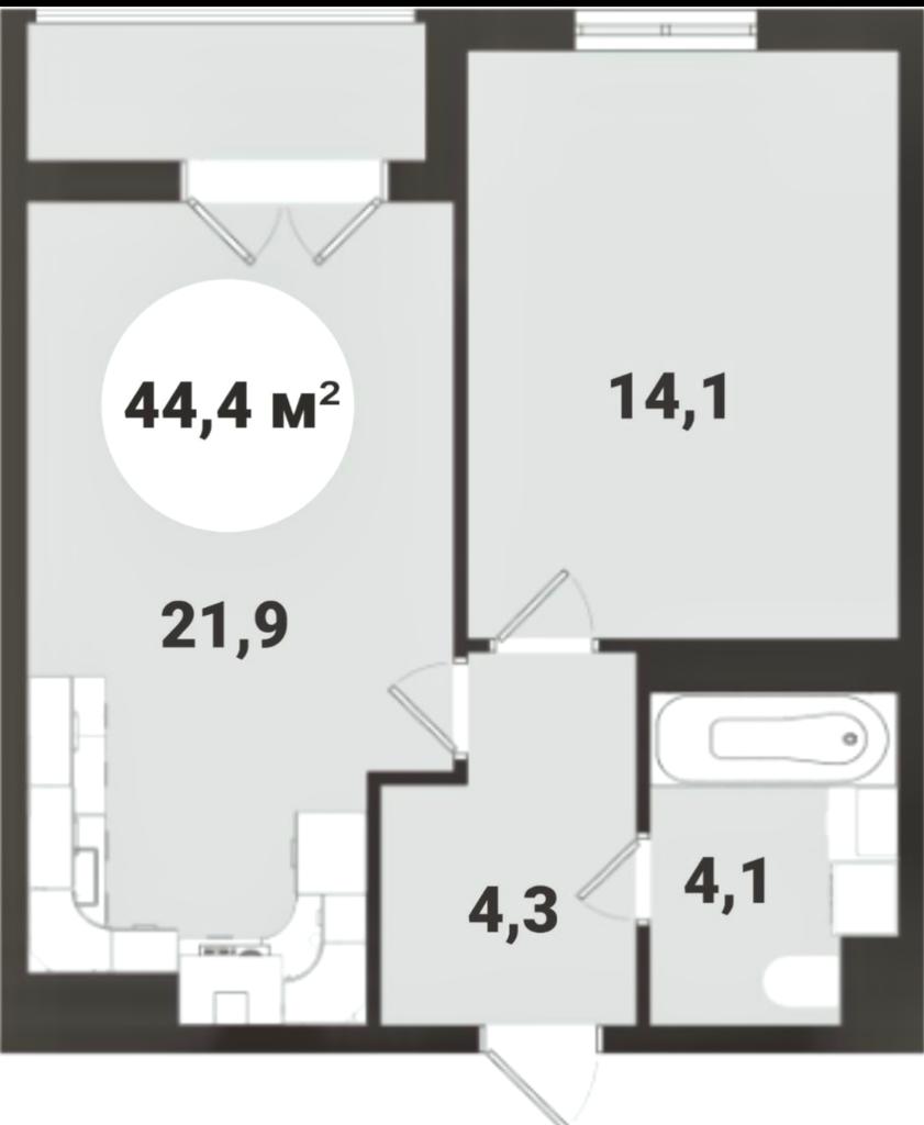 Продается однокомнатная квартира, 44 кв.м., 8/9 эт