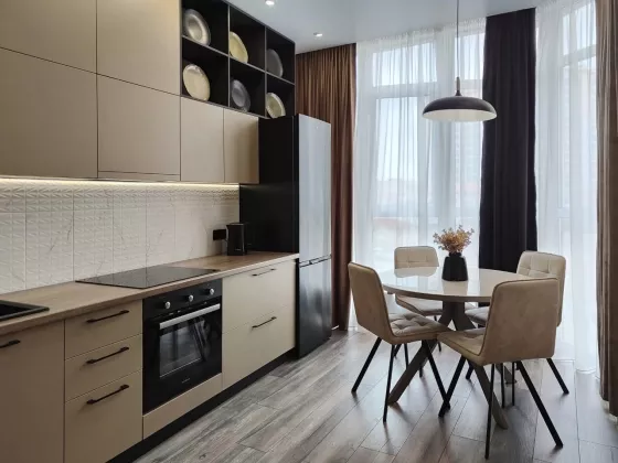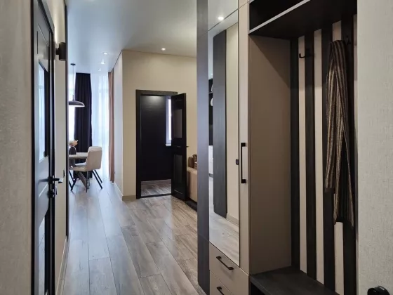 Продаётся шикарная 2-комнатная квартира в г. Анапа, в новом жилом комплексе "Черное Море". Общая площадь квартиры 52 кв.м. Кухня 15 кв.м., гостиная 20 кв.м. спальня 10 кв.м. В квартире сделан дорогой ремонт, установлена дорогая сан/техника. Полностью остаётся мебель и бытовая техника. Документы готовы к продаже. До песчаного пляжа 20 минут ходьбы. В шаговой доступности Восточный рынок, гипермаркет, остановки
